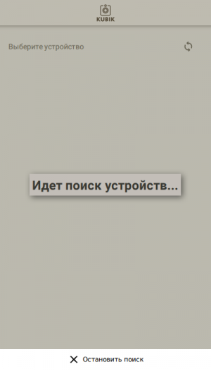 При запуске приложения Вы попадаете на экран поиска устройств. На данном экране Вы можете найти свои устройства и подключиться к ним.