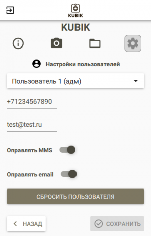 В этом разделе Вы можете настраивать пользователей Вашей камеры. Все настроенные пользователи могут получать снимки, сделанные камерой на указанные Email адреса или при помощи MMS.